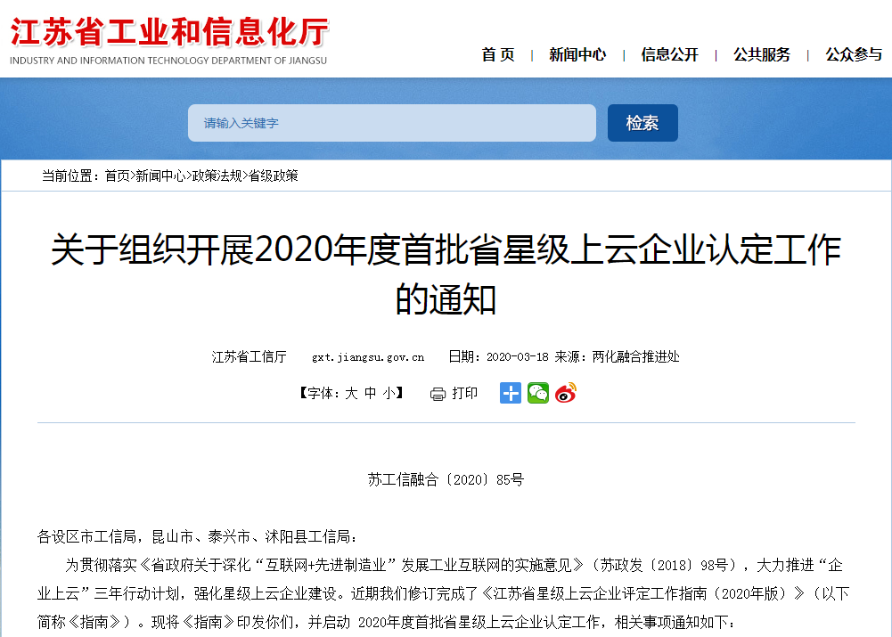 《2020年度首批省星级上云企业认定工作的通知》