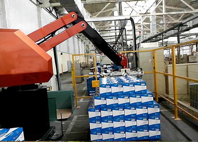 全自动智能码垛系统设备广泛用于石化、食品、医药、饲料、粮食、有色矿物和建材等行业中的粉状、粒状物料、规则有一定体积物品的自动包装和自动码垛。
