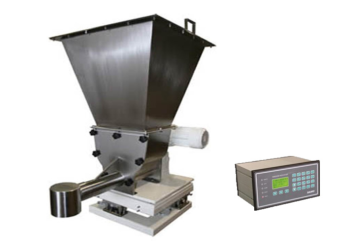 当料斗中测量的重量达到料斗低料位(重新加料)时,控制器将给料系统按容积给料进行控制,然后将电动闸门打开,给料斗快速重新装料,到达料斗高料位,关闭电动闸门,失重控制器重新动作。