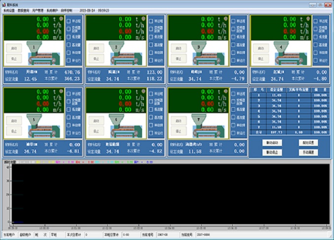 自动方式:通过在工控机上选择预先设定的配方,配方确定后启动系统。配料系统根据配方的设定自动控制各称重给料机的运行。