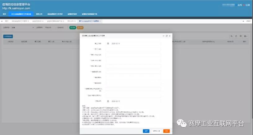2. 防疫物资生产和复工人员疫情相关信息上报统计