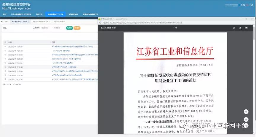 为适应本次疫情带来的远程协作需求,平台为政府提供了防疫通知和规范文件、表单模板发布功能,为辖区企业提供了文件查阅和附件下载功能,帮助双方顺利完成“无接触”式政策落地和学习。