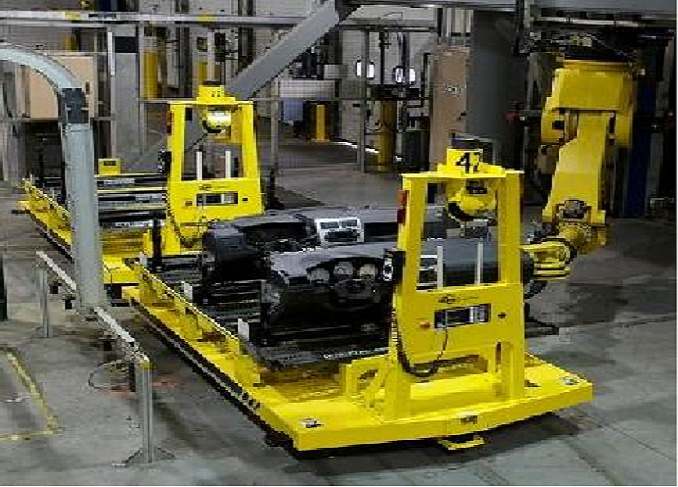 优点:产品安装在车体上进行装配,可以替代固定式的流水线,同时实现了柔性生产模式。