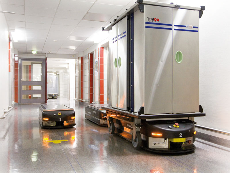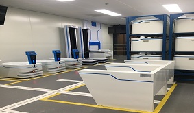 物流机器人采用二维码或视觉导航,小巧灵活且精度高速度快;具有自动检测障碍物,自由规划路线,姿态保持等强大功能。机器人能根据订单,将货物所在的货架从巨大的仓库储存区搬到处理区,大大提高处理效率,提高5-6倍的仓储处理能力。